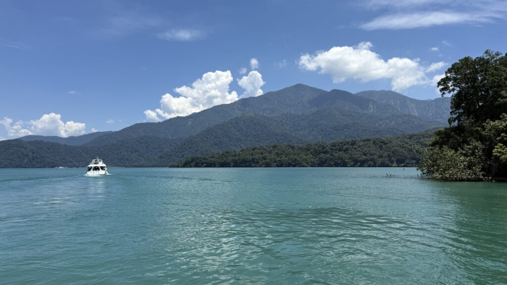 台湾の中部に位置する南投県魚池郷にある日月潭は、海抜748メートルに広がる台湾最大の淡水湖です。湖の中央に浮かぶラル島(拉魯島)を境界として、北側が太陽のように丸く、南側が三日月のように細長い形状をしていることからこの名称で呼ばれています。湖の周囲には全長約30キロメートルの環状道路があり、その一部に整備された自転車道は、アメリカのCNNによって世界で優れたサイクリングロードの一つとして紹介されました。