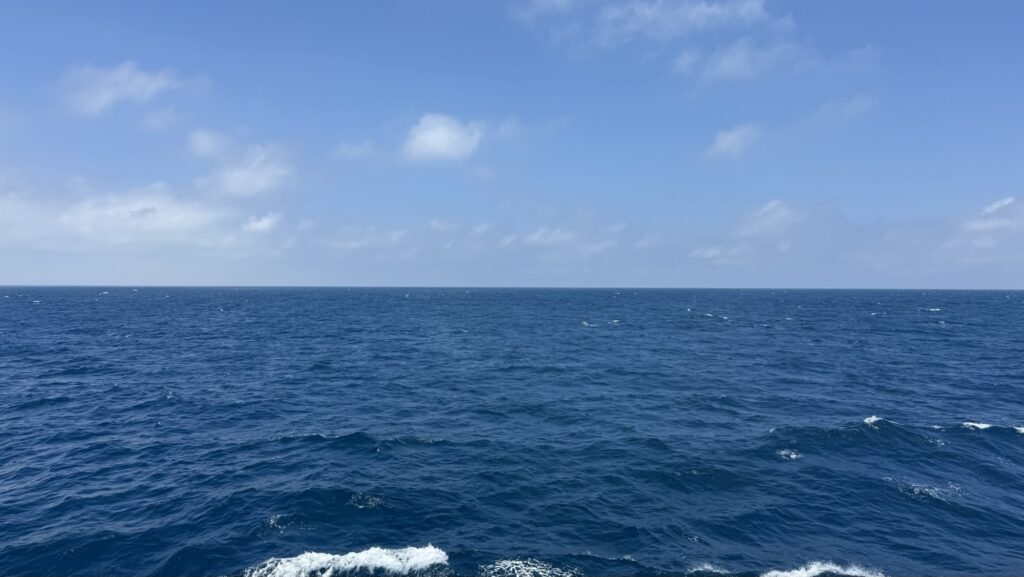 しばらくすると島影も見えなくなり、見渡す限りの大海原です。