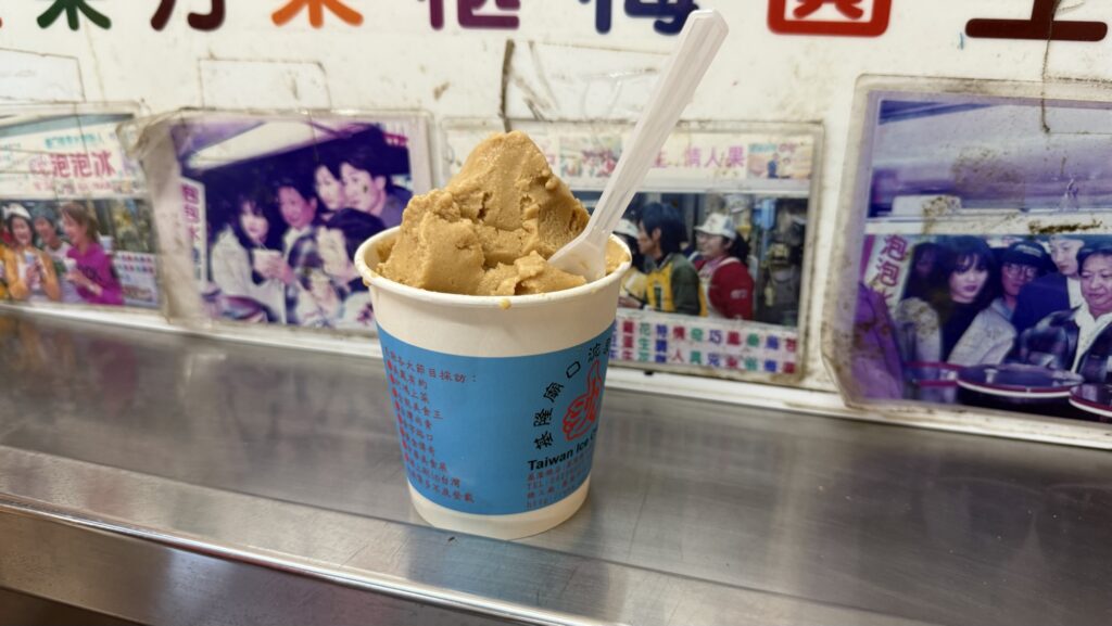 泡泡氷という台湾風かき氷。氷にシロップをかけるのではなく混ぜながら作る味付きアイス (60台湾ドル、約300円)。