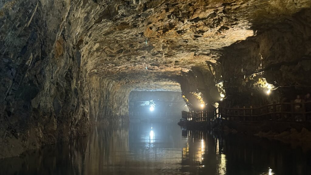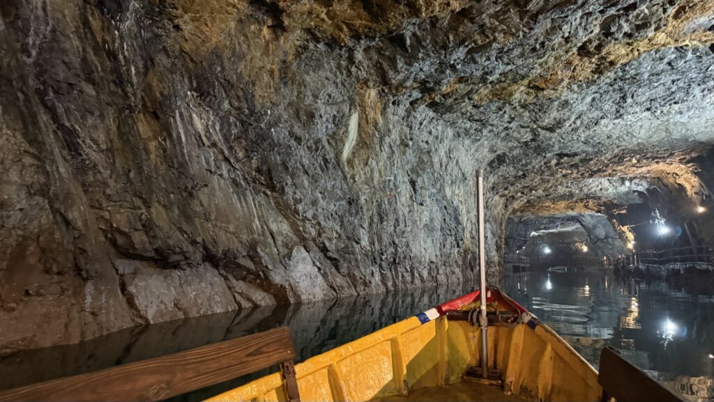 ボートは15分おきの時間指定になっています。この時間に来たのは僕一人だけでしたが普通に出発してくれました。ボートは手漕ぎで、他に誰もおらず静かな坑道内をゆっくりと進みます。雰囲気があってとてもよい。