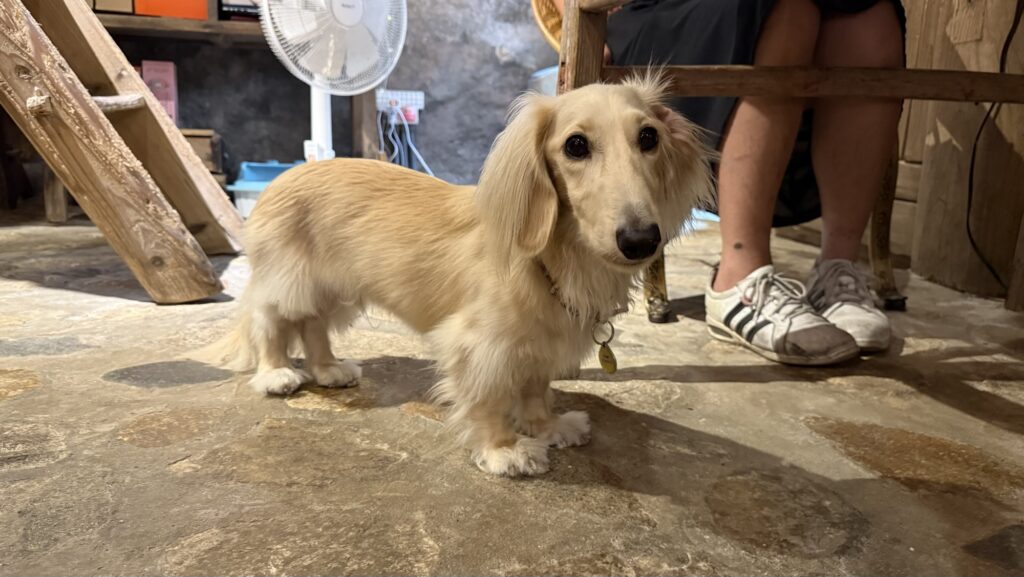 応対してくれた女の子、店員かとおもったら長期滞在している宿泊客でした。その飼い犬。