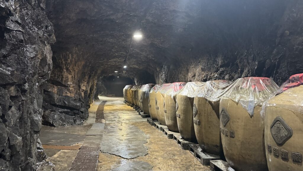 元々は軍事用のトンネルで、高粱酒や老酒の熟成用貯蔵庫として利用されています。中は麹の匂いが結構きつい。