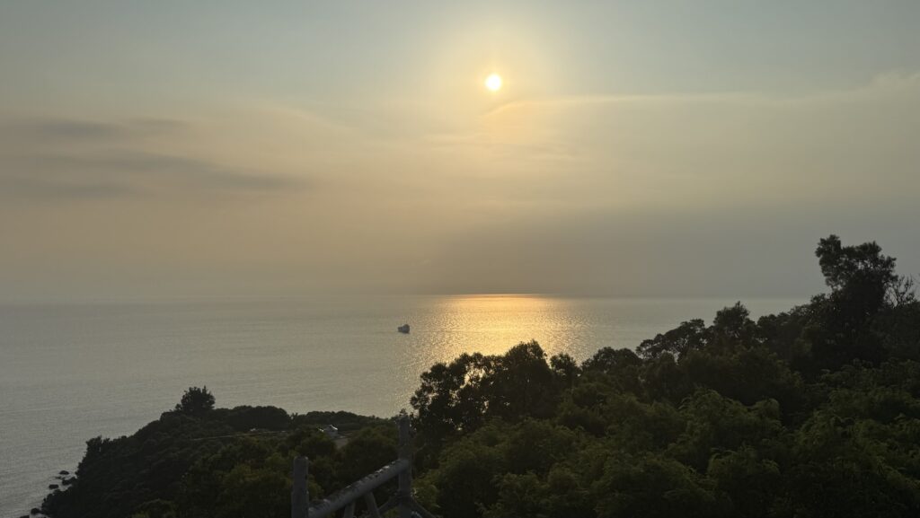 夕暮れに合わせて戻ってきました。島の西側の高台にあるため、フェリーで来た時にも目立っていました。高さは南竿の面積にちなんでいるらしい。