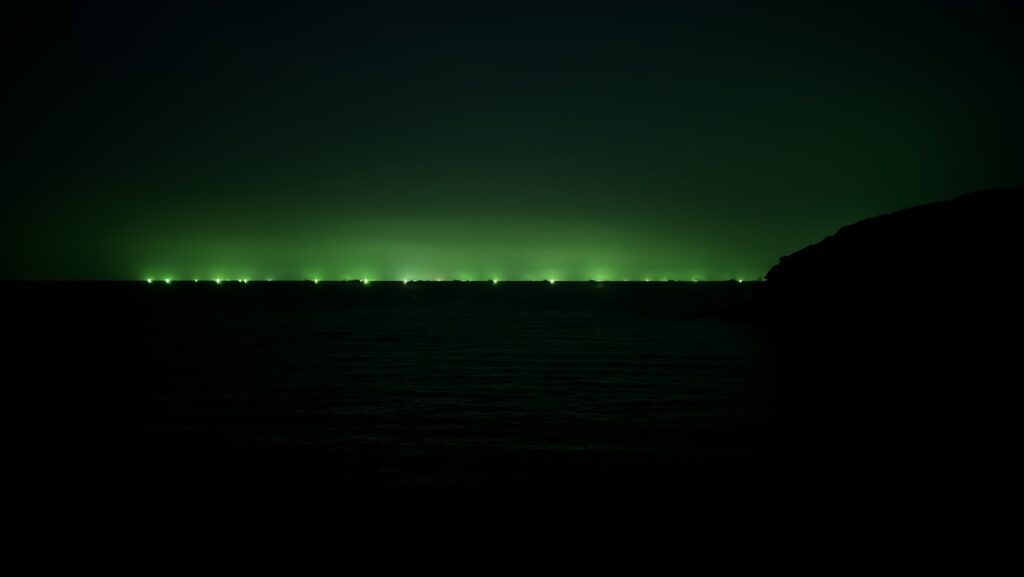 外へ出ると沖合に漁船の明かりが並んでいます。島の南東側なので台湾側の船でしょう。