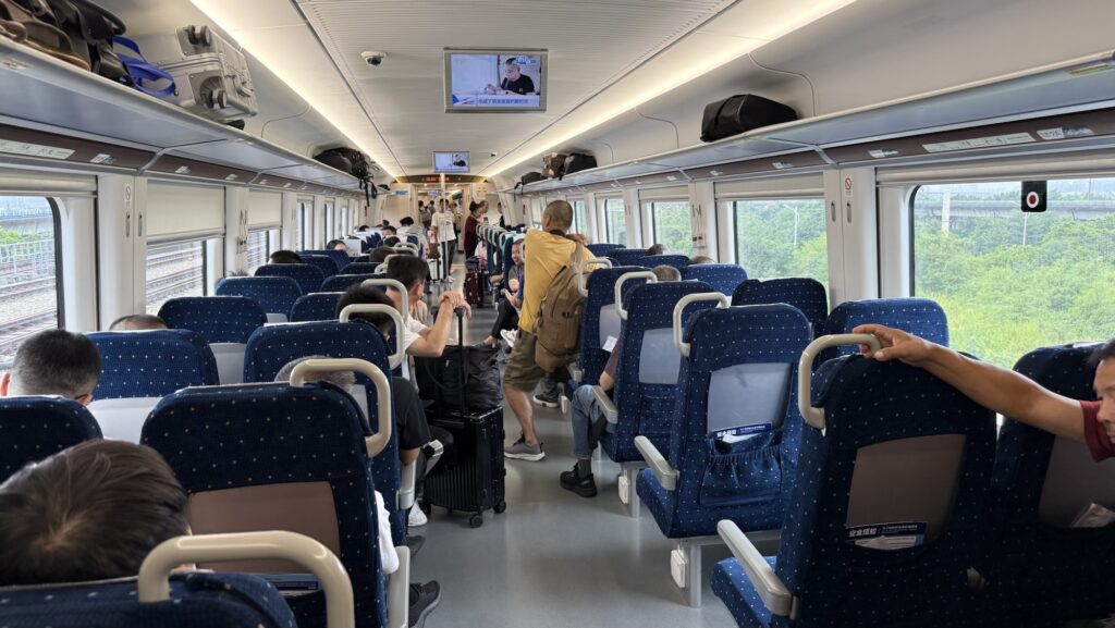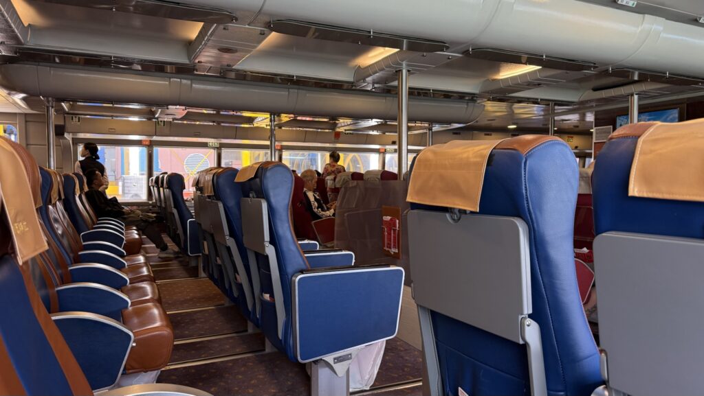 高速鉄道の一等と比べるとコスパは微妙……ですが、空いているので窓際席に行きやすいのはいいかもしれません。