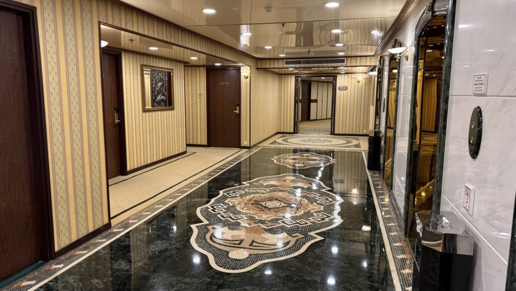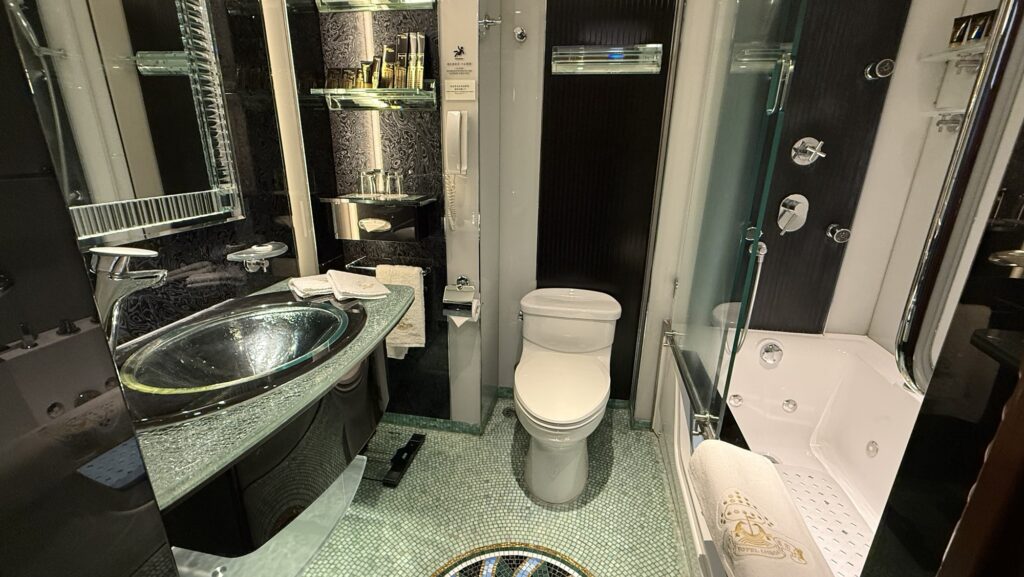まだチェックイン時間には早いですが部屋に入れてもらえました。部屋もなんかギラギラで中国人が好きそうな感じです。これで一泊約1.8万円なので、一回泊まってみるのはいいんじゃないでしょうか。