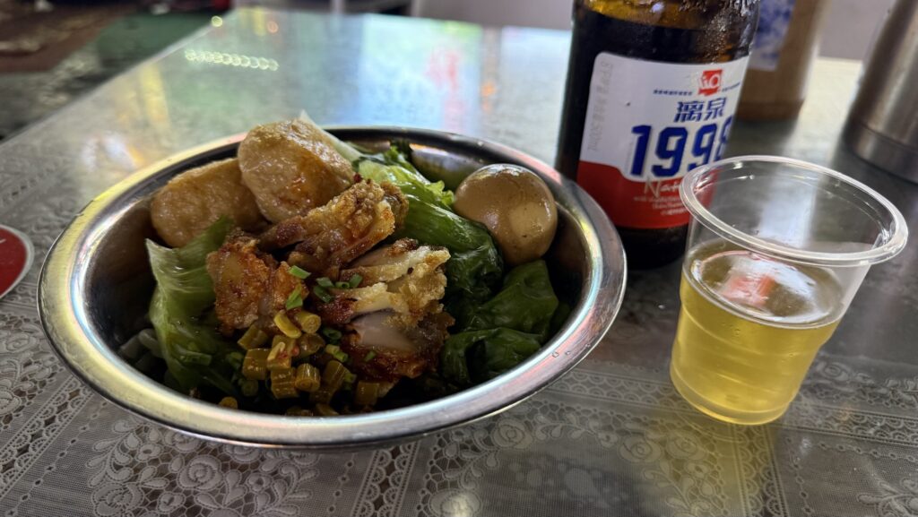 店ごとに秘伝のタレがあるらしく、日本でいうラーメン的な感じでしょうか。僕が食べた店のはカリカリに揚げた豚肉とか具だくさんで食べ応えがありました。