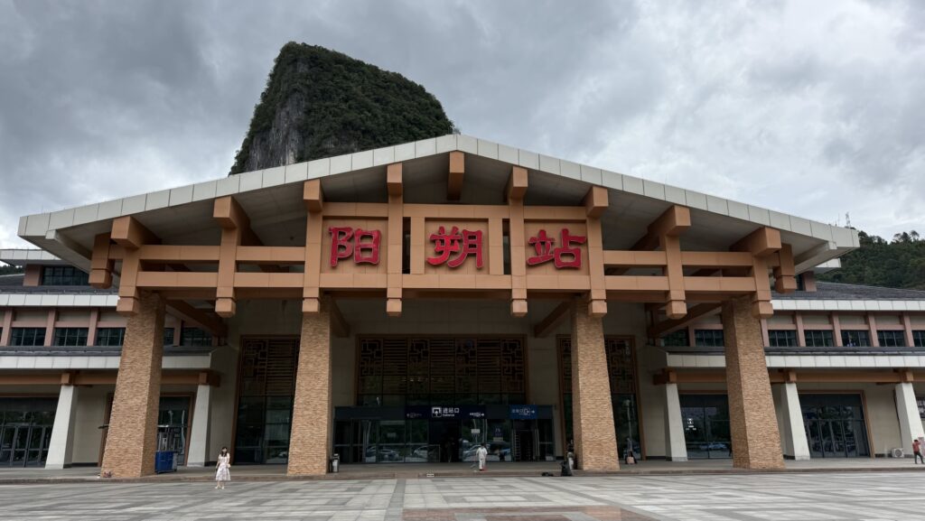 バスで移動する場合、一度 陽朔の街を経由する必要があります。陽朔の街は高鉄駅とは反対方向にあり、陽朔の街まで一時間、陽朔から桂林まで二時間ほどかかります。