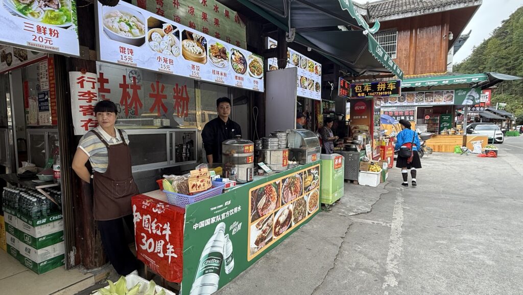 バスは山道を一時間ほど走り、13時半ごろに大寨の入口に到着。とりあえず入口にあった食堂で昼食です。