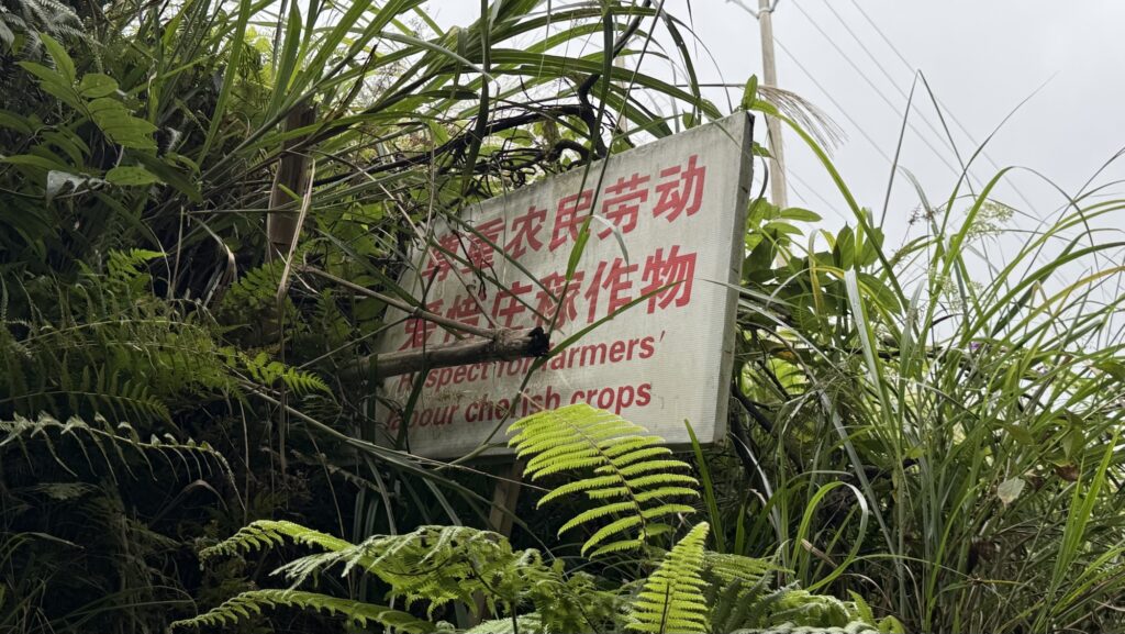 「作物荒らすなよ」的な看板。棚田は観光用に見た目だけ整えているわけでもなさそうで、農作業している人は結構見かけます。
