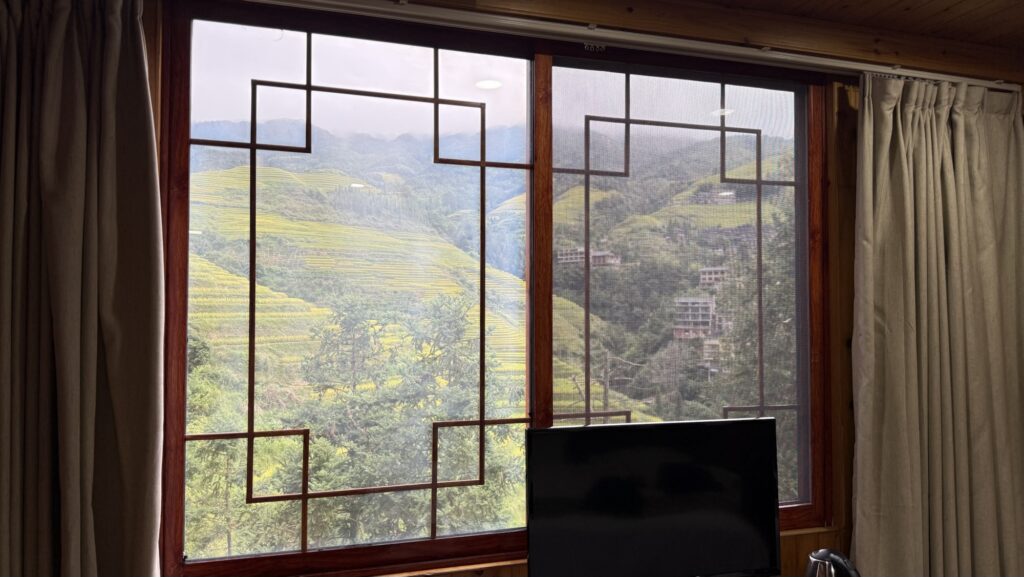 部屋はいい感じのライスフィールドビューです。というか、この辺に泊るとどこでも棚田は見えそうです。