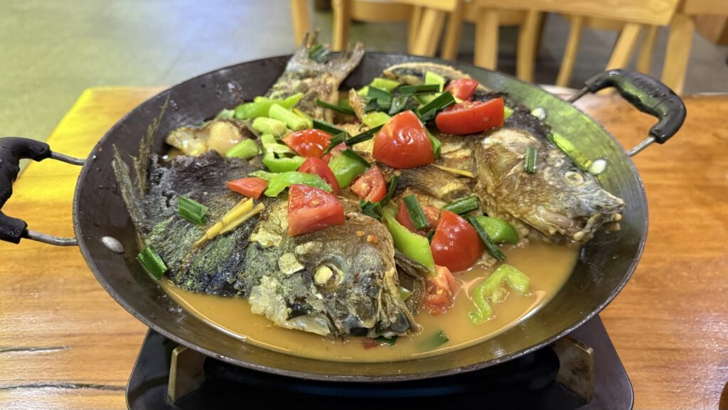 料金はキロ売りが普通でここは68元/キロ。ビールとかご飯合わせて154元(約3,080円)だったのでだいたい2キロくらいの魚だったのかな。一人だとギリ食べきれるくらいのボリュームでした。