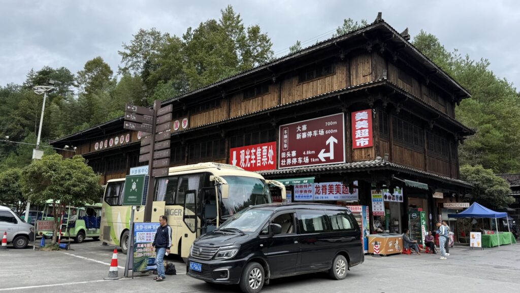 龍勝から景区の入口までは路線バスでも行けますが1kmほど歩く必要がありそう。早めに行きたいのでタクシーで移動します(26元、約520円)。