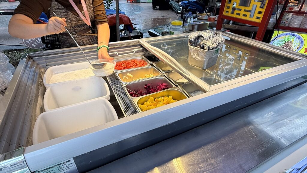 大同で食べた涼粉は主食的な麺料理でしたが、ここではデンプンゼリーを使ったスイーツを指すよう。
