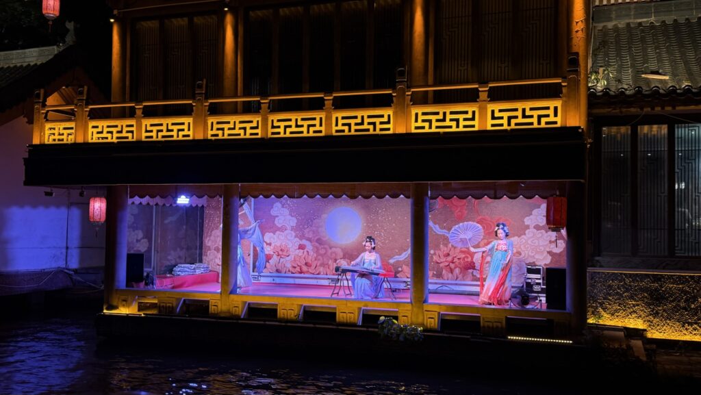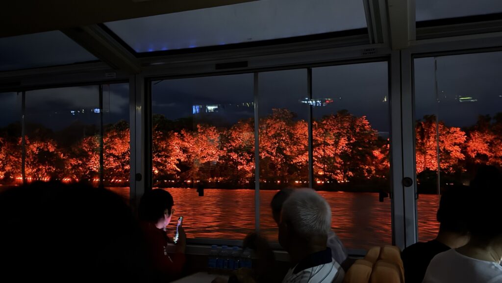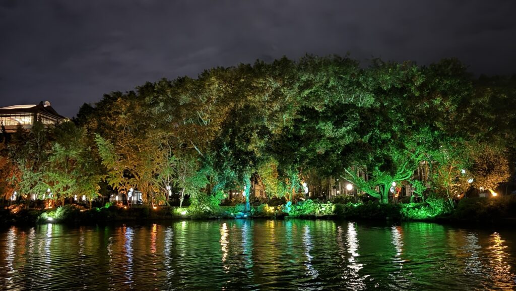 「とりあえず回るところは多いほうがいいか」と思って「両江四湖」ルートにしたのですが、デッキに出られない河エリアはそれほど楽しくはありません。メインの見どころに絞るなら「四湖」ルートでも良さそうです。