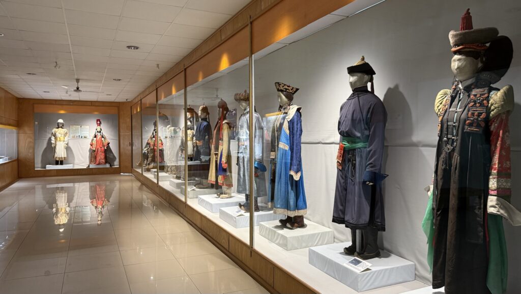 モンゴル各地の民族衣装や装飾品。
