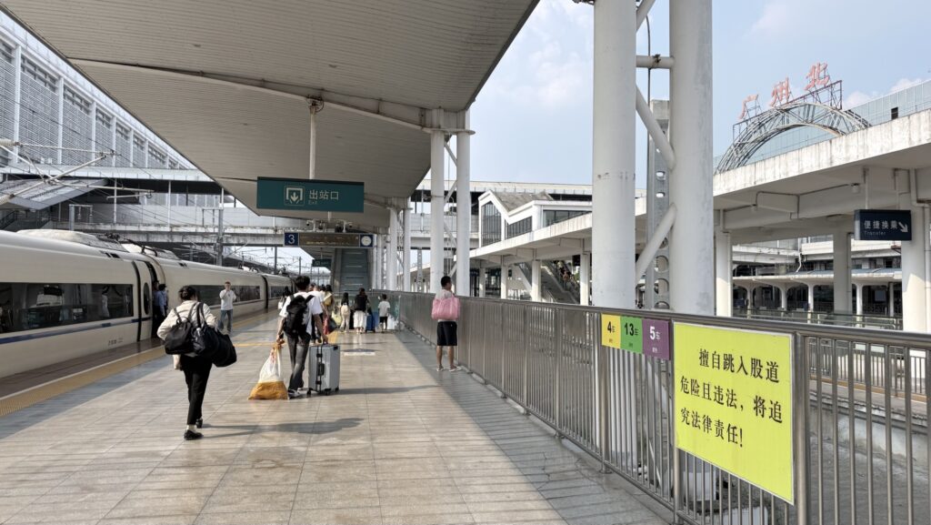 日本への飛行機は広州発のため、まずは高速鉄道で広州へ向かいます。