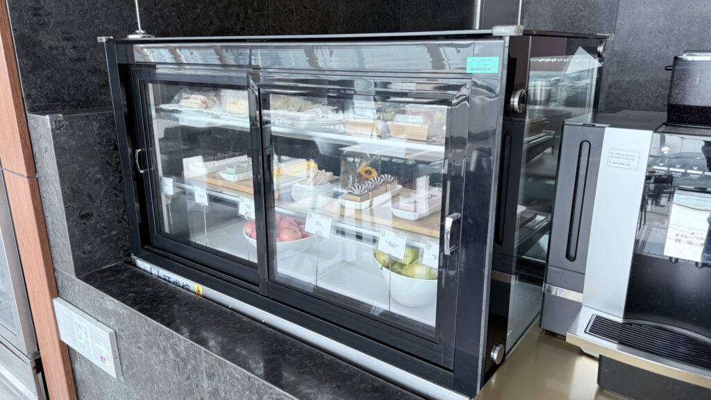 ラウンジ内に軽食とシャワールームはあります。Wifiは飛んでないよう。まあちょっと時間つぶすには十分です。