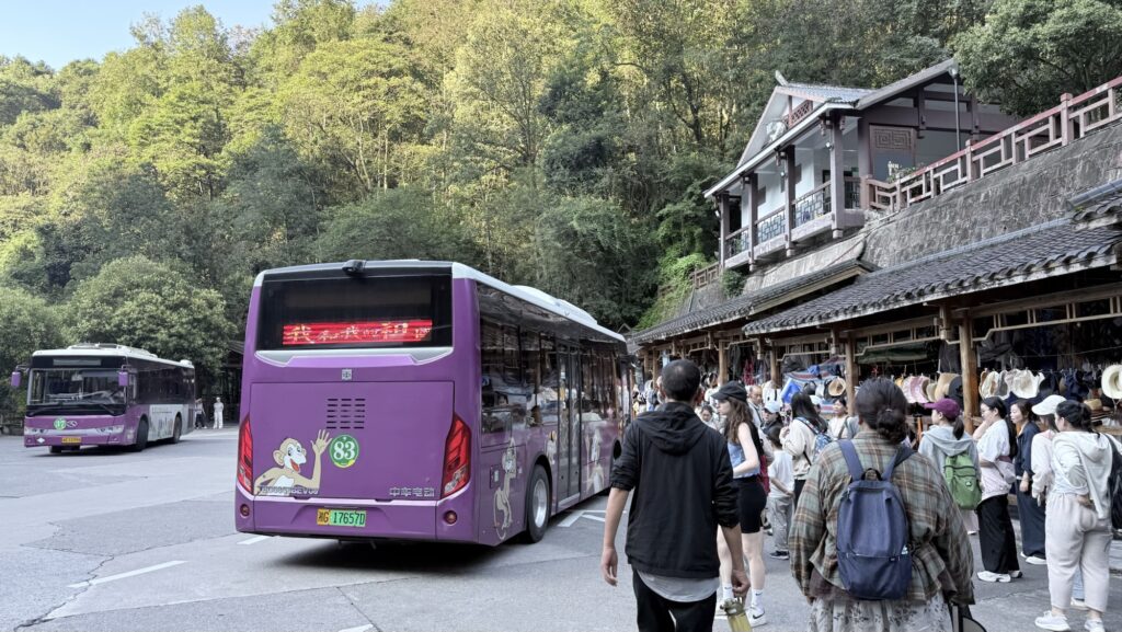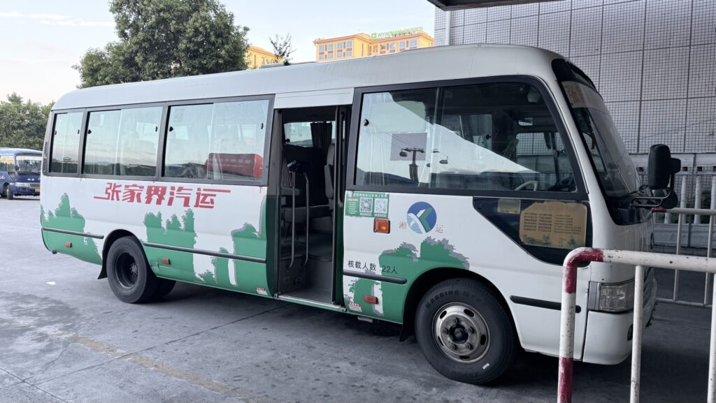 武陵源へのバスは駅すぐそばの中央バスターミナル(张家界中心汽车站)から頻発しています。バスの運行時間は7時から18時まで15分おき、所要時間は50分ほど。運賃は13元(約260円)