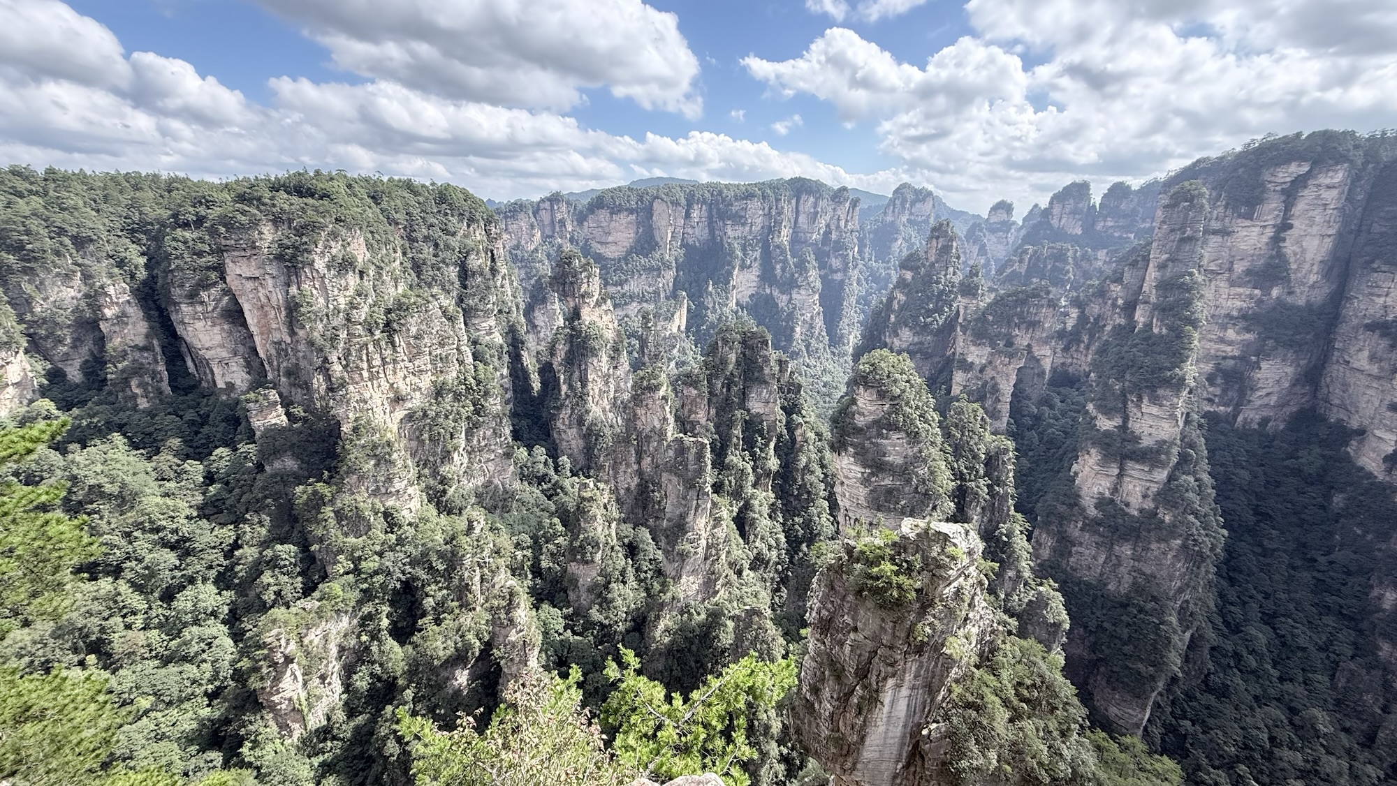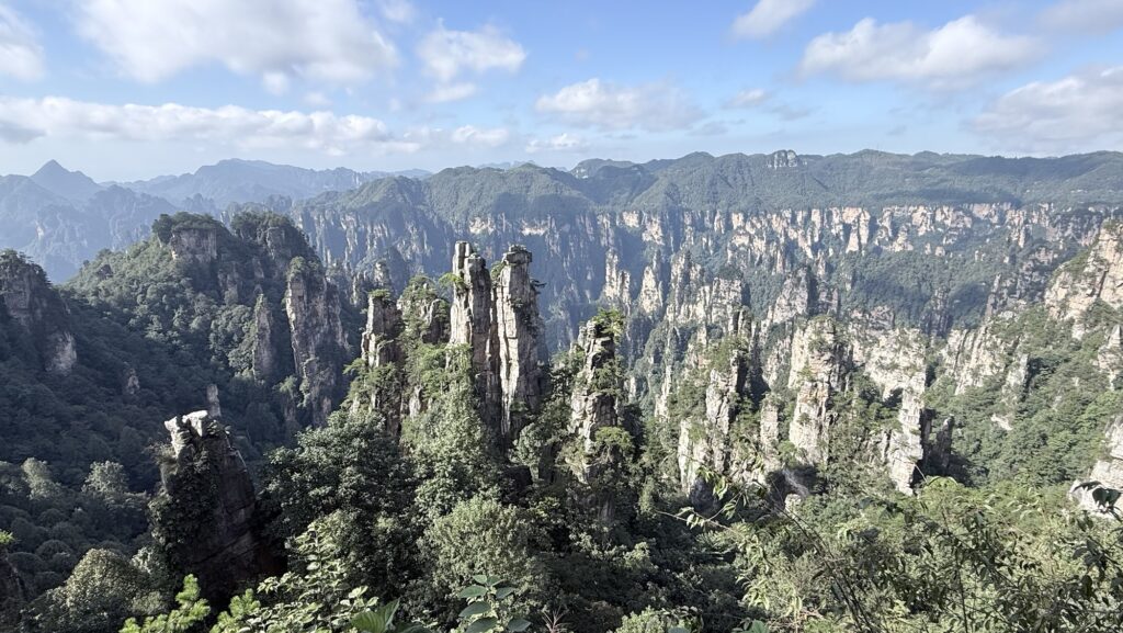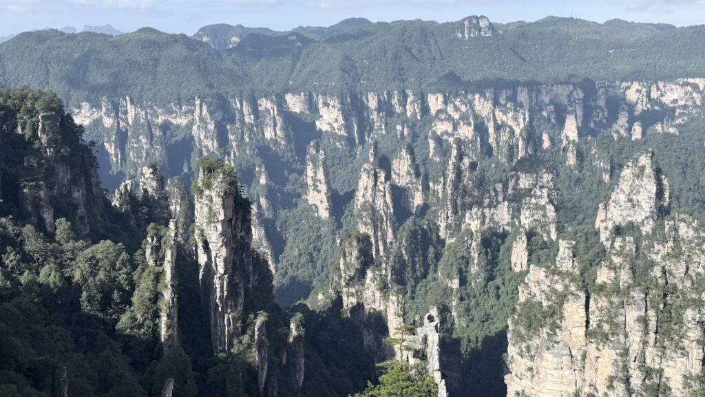 乾坤一柱からこの辺までは武陵源のハイライトで、視界一面に奇峰の大パノラマが広がります。