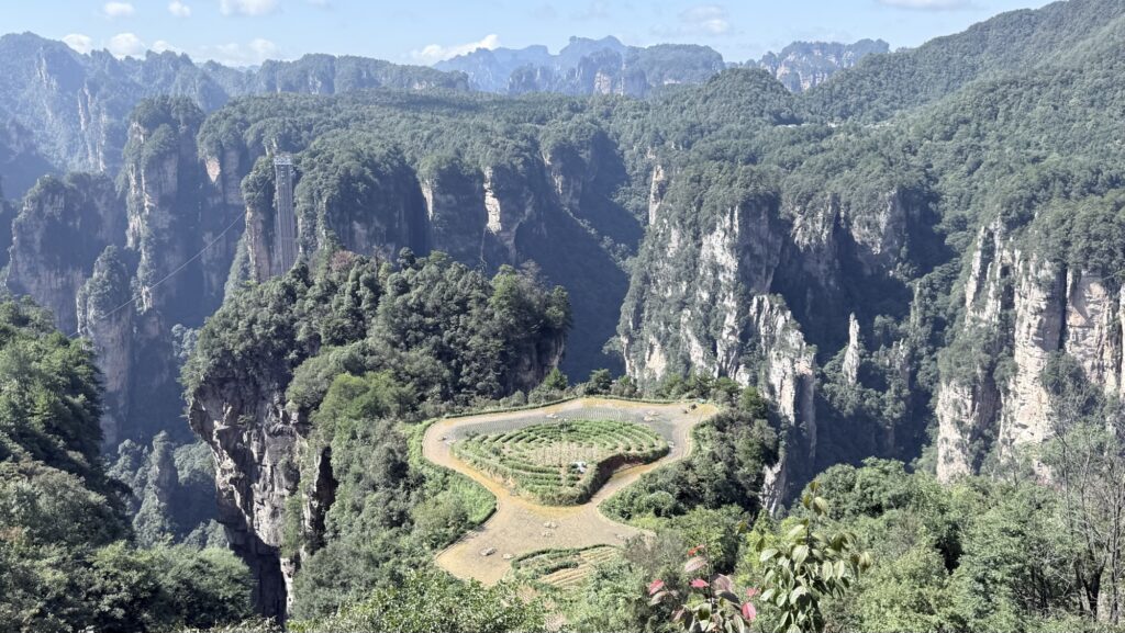 武陵源の中心部、天子山(てんしさん)エリアの標高1,000メートルを超える高所に位置するのが「空中田園」です。