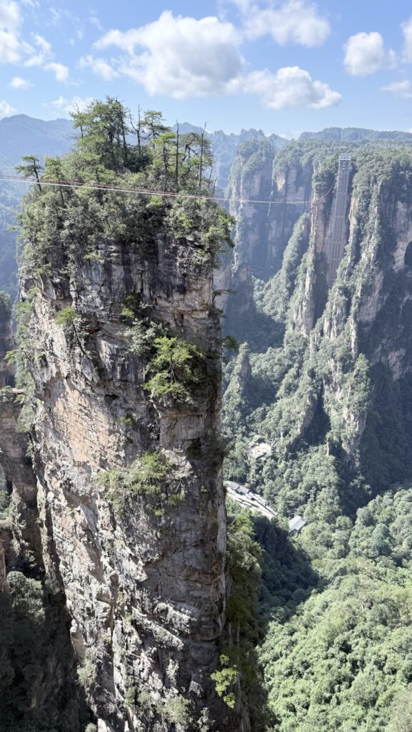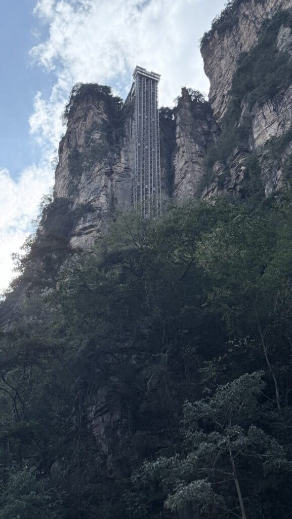 百龍エレベータは武陵源のど真ん中に作られた世界で最も高い屋外エレベーター。作られたときは環境や景観面でどうかという声も多かったそうですが、意外と風景に調和してます。