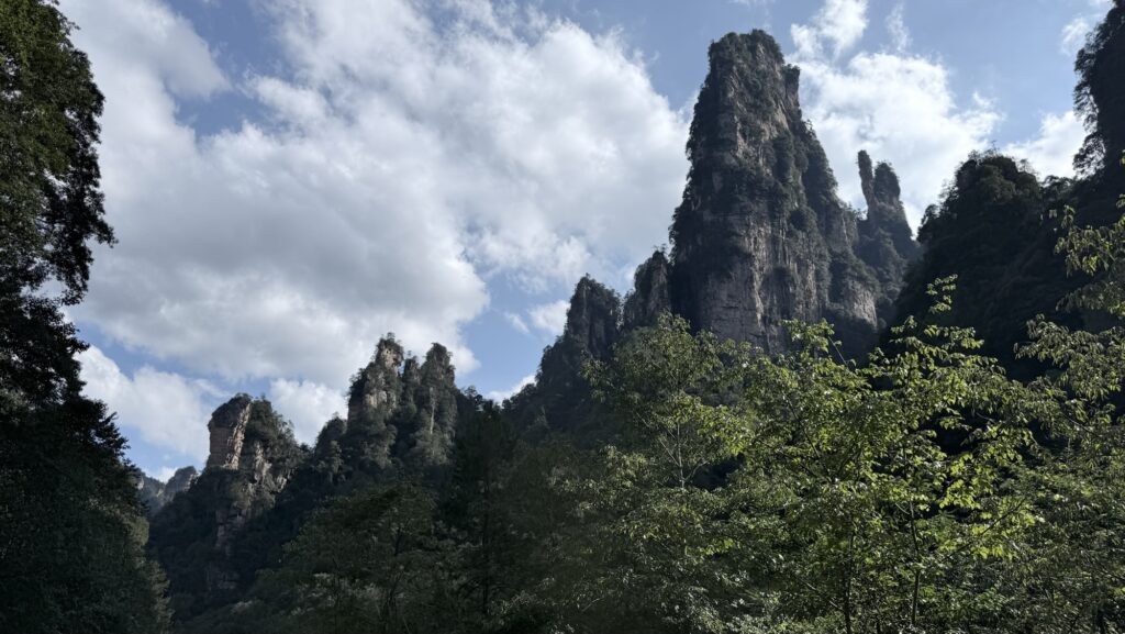 再び観光バスに乗り、昼ごろ楊家界という北西のエリアに着きました。ここは明日また来る予定なので少しだけ歩いて次へ。