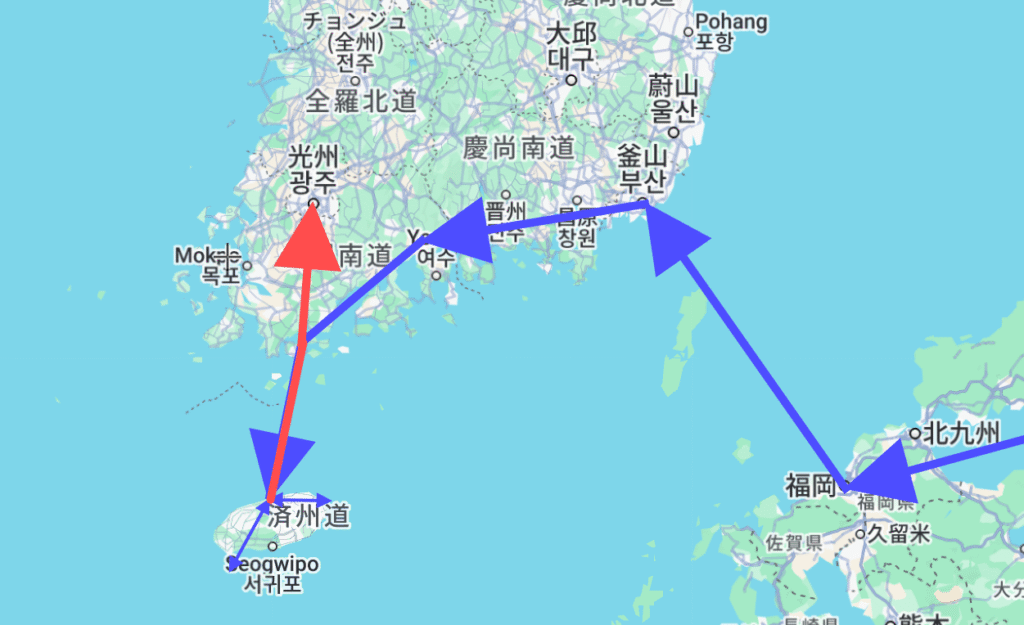 アニョハセヨー。今日は韓国本土へもどり、光州へ移動しました。