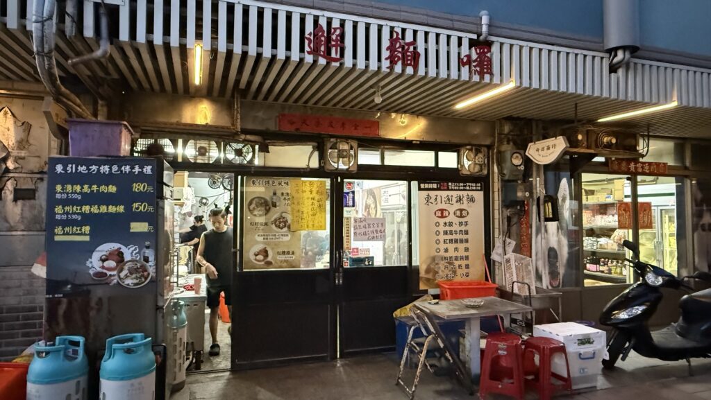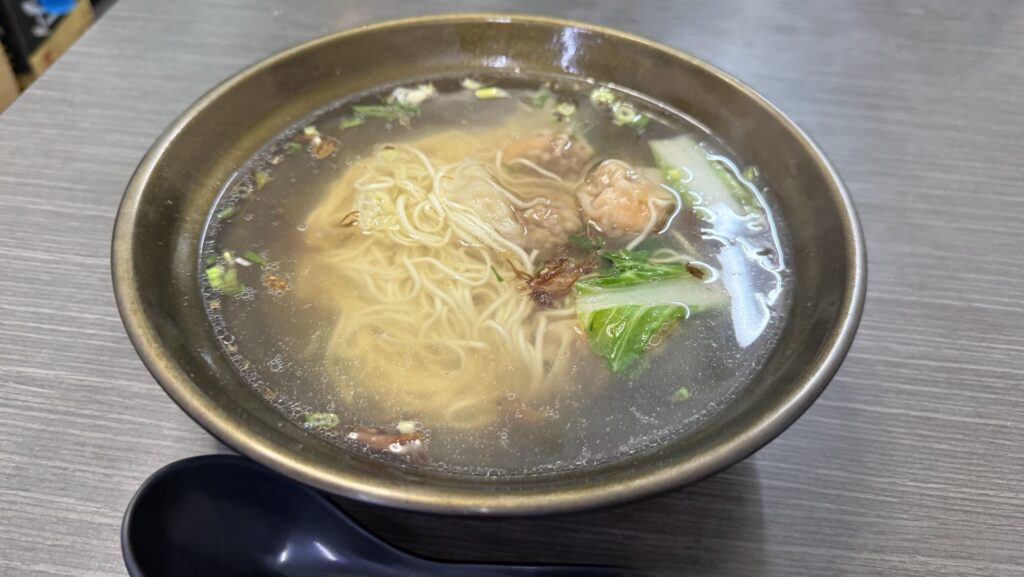 夕食は「東引邂謝面」という食堂で「鮮蝦餛飩麵(エビワンタン麺)」、110台湾ドル(約540円)。